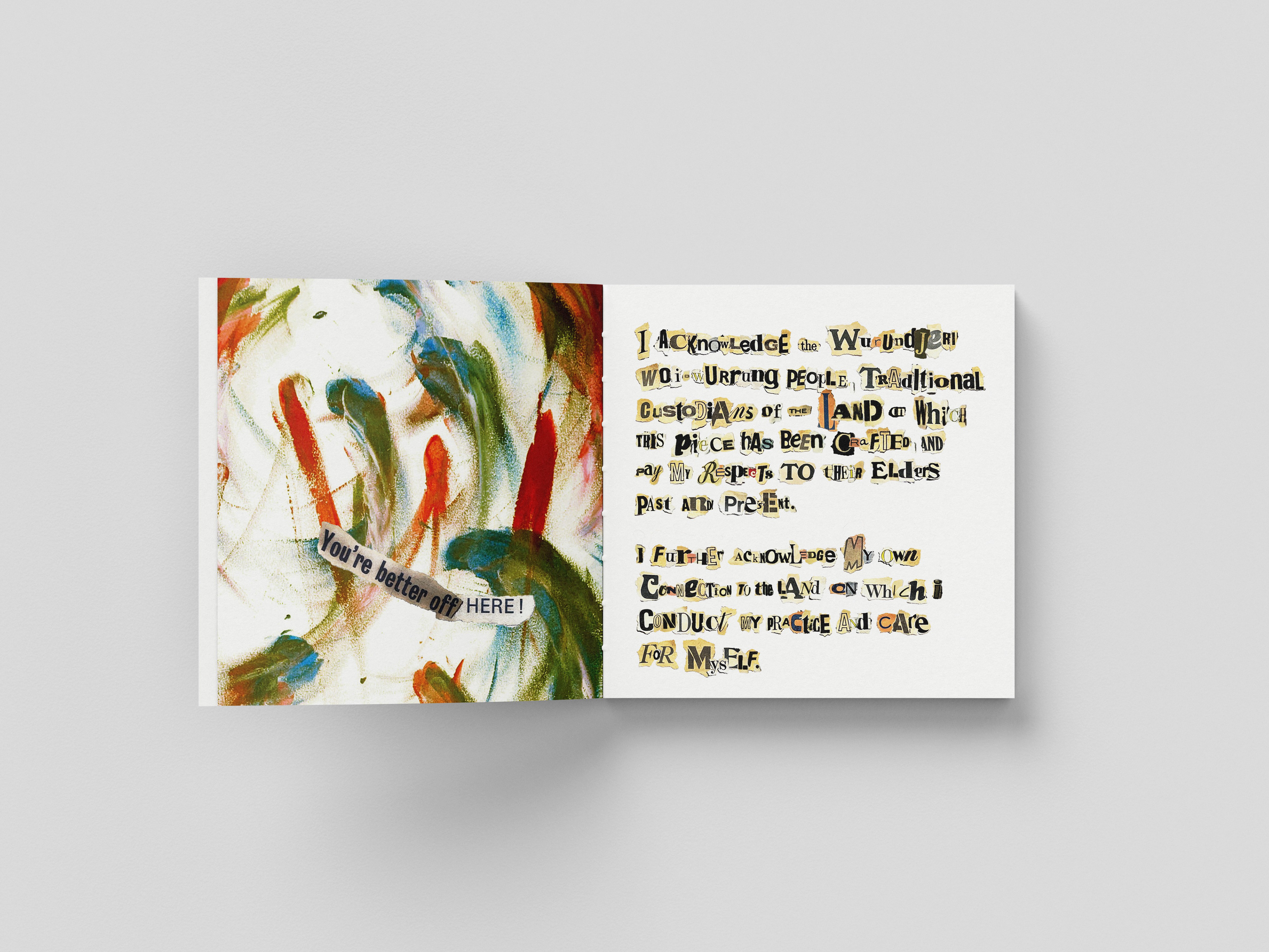 'Distinction' is an artist book made from various media, such as finger painting and collage, to explore the experience of a dissociative disorder. Art direction played a crucial role in creating a disturbing irreality where time plays by its own rules and memories fade.